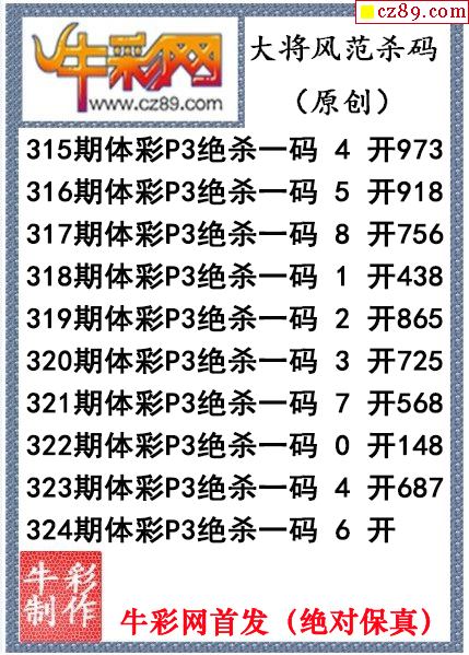 > 大将风范杀码324期体彩p3图谜(原创)