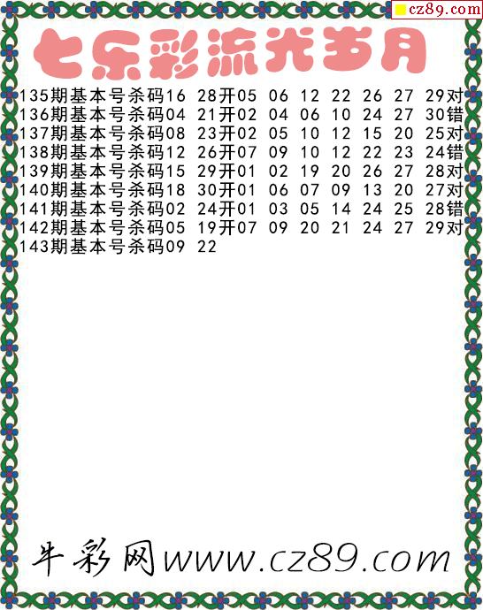 七乐彩2025143期流光岁月杀码图谜